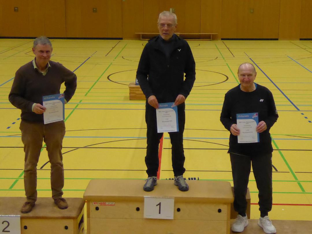 Noch erfolgreicher verlief der Doppelwettbewerb: Gemeinsam mit Dieter Flaig (TV Wehen) präsentierte sich Hubert in Topform. Mit präzisen Platzierungen, kluger Spielgestaltung und großem kämpferischem Einsatz dominierten die beiden das Feld und sicherten sich verdient den Titel des Hessenmeisters. Eine starke Vorstellung!